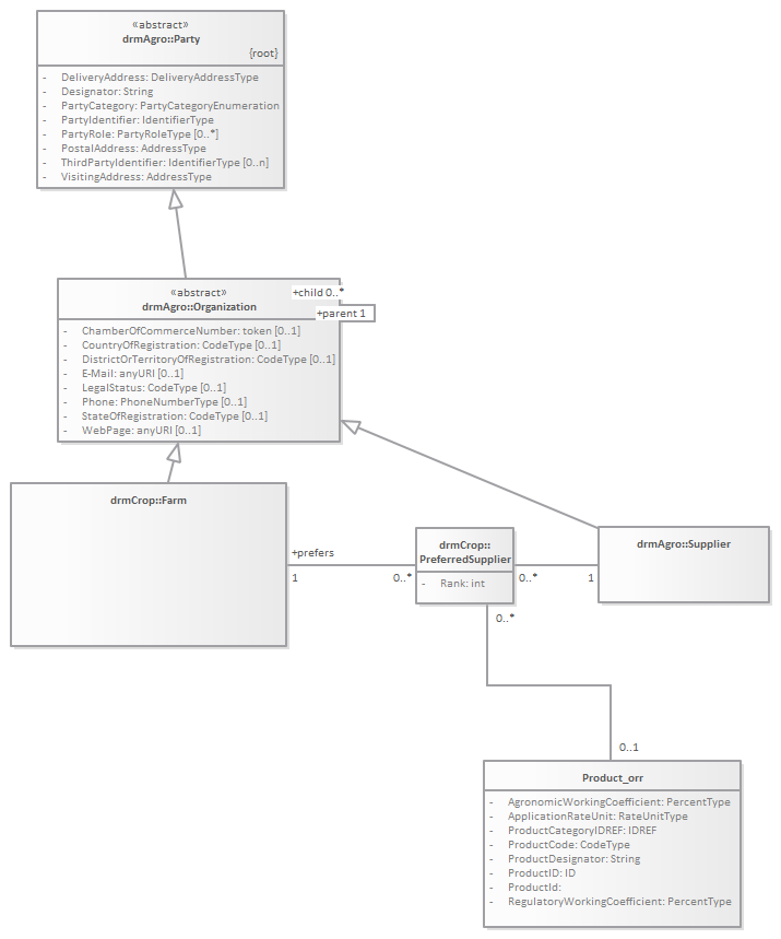 Class diagram describing the relation between a farm and his preferred supplier(s) for particular products.<br/>
